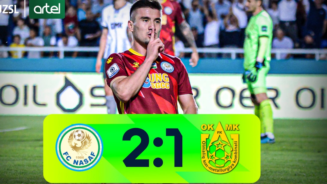 «Насаф» - АГМК – 2:1 (Норчаев, 16, Черан, 78 - Абдураззаков, 52).