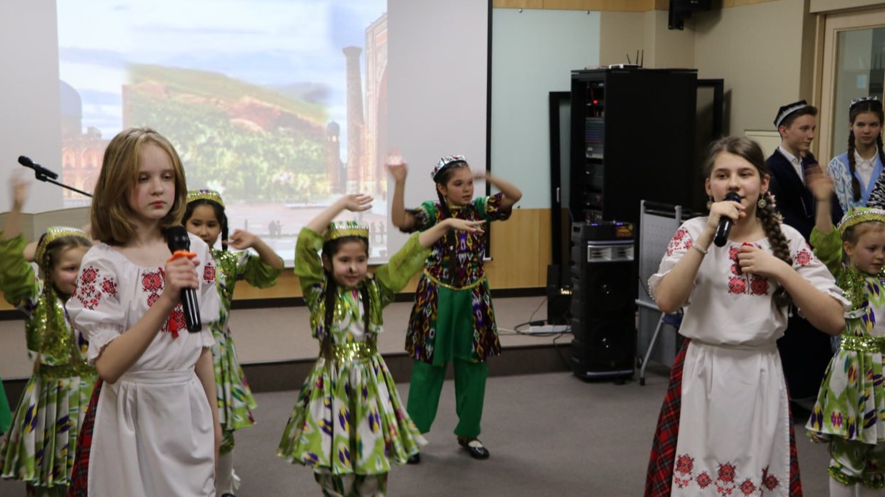 Девочки из школы № 208 Дарья Леонова и Александра Толочко дуэтом исполнили песню «Узбекистан», вызвавшую живой отклик в сердцах аудитории.