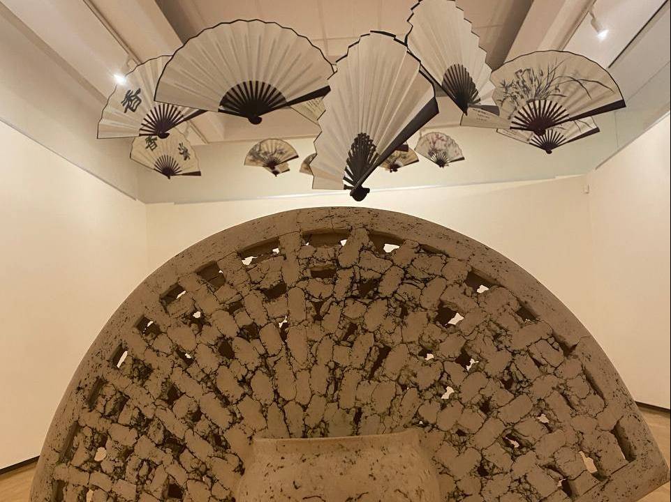 В центре зала расположена инсталляция «Странствие», которая состоит из вееров. Для автора этот предмет представляется воплощением женственности. Например, веерами украшали императорский дворец. А еще они играют важную роль в японском театре и традиционном танце. В инсталляции веера символизируют птиц.