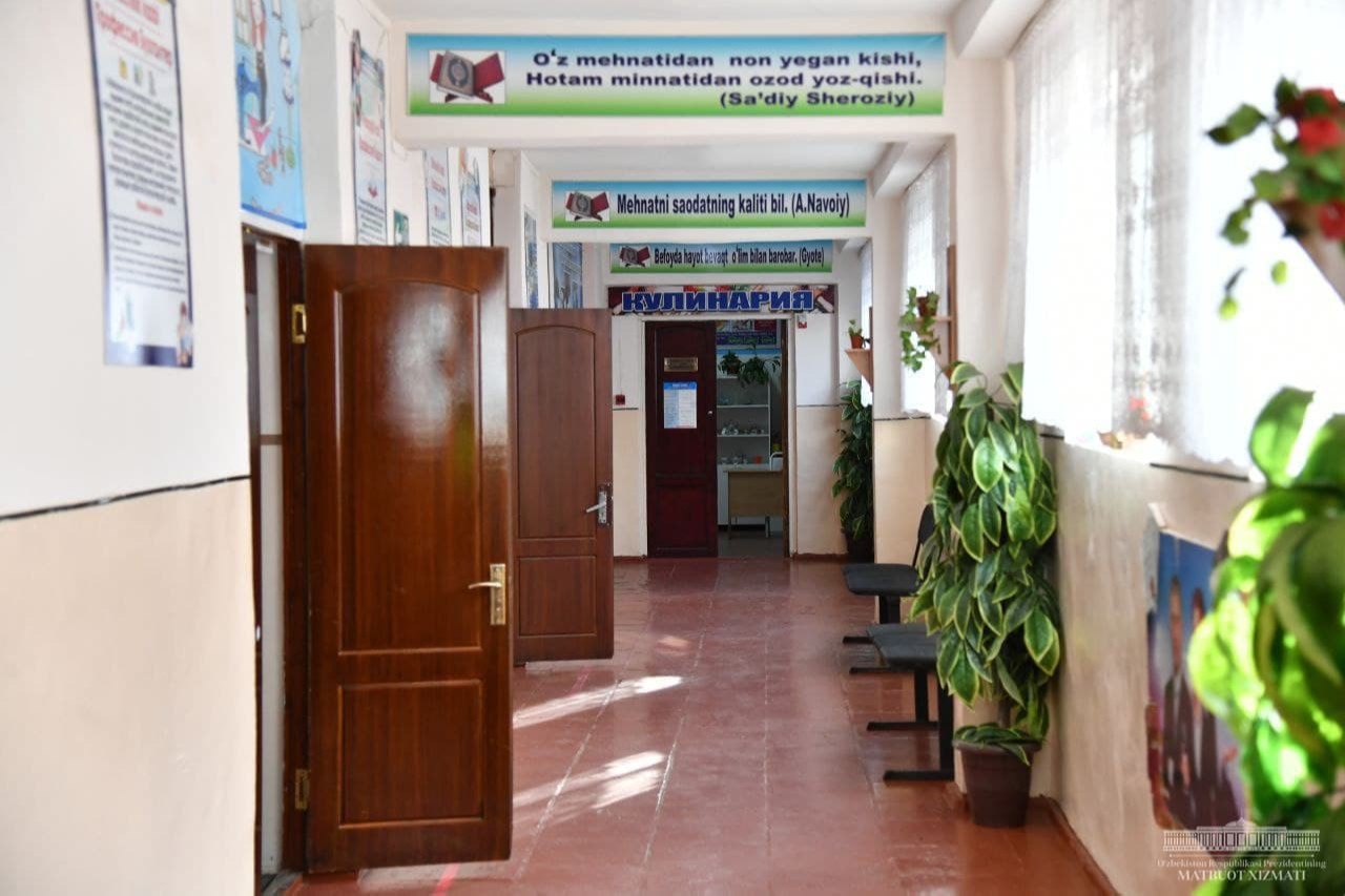 Глава государства осмотрел классы, спортивный зал и столовую. Даны указания по строительству нового здания для школы, профессиональному обучению учащихся, организации практических занятий на предприятиях.