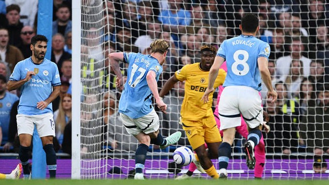 Но почти сразу хозяева забили гол. Это Илкай Гюндоган нашел пасом Жереми Доку, тот раскачал оппонента и ушел, вроде поскользнулся, но именно это и помогло выдать неотразимый пас назад на Де Брейне. Кевин такие шансы как правило не упускает. Расстрелял португальского вратаря Жозе Са.