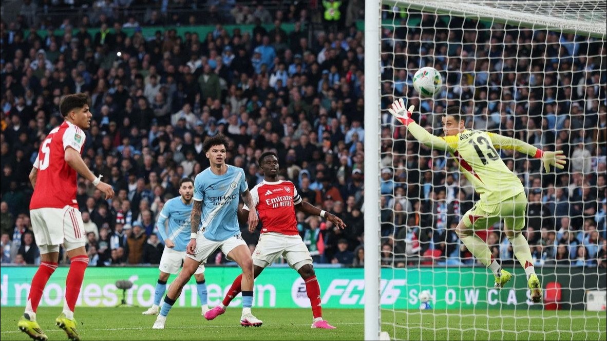 Кепа не был столь эффективен. Сначала чуть не удалился, схватив за линией штрафной Жереми Доку, но Битер Бэнкс простил, показав желтую карточку. А затем упустил мяч из рук после простого навеса и Нико головой отправил его в сетку ворот. А потом оформил дубль ударом головой с передачи Матеуса Нуньеса.