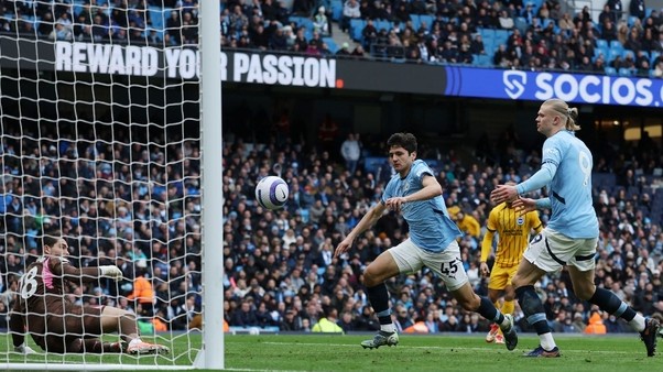 В конце первого тайма не разобрались Рико Льюис и Нико Гонсалес и чуть не привезли гол в свои ворота, но тогда Жоао Педро промазал и простил. Зато в старте второго тайма после подачи углового Эступиньяном и скидки головой от Уэбстера добивал в сторону ворот Джек Хиншелвуд. Мяч рикошетом от ноги Абдукадыра Хусанова влетел в ворота.