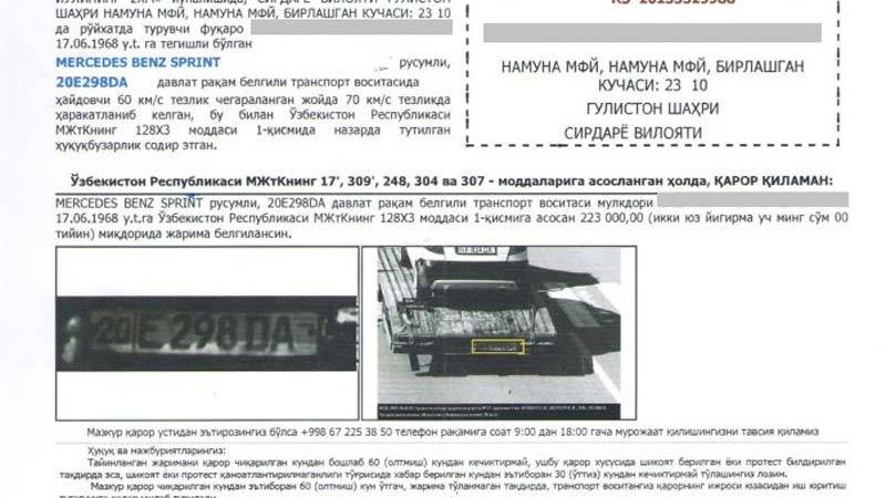 После того, как решение было получено ответственным сотрудником УБДД УВД Сырдарьинской области для исполнения, решение о наложении штрафа было наложено на владельца специального эвакуатора марки "Мерседес-Бенц Спринт" и отправлено почтой по адресу проживания владельца, сообщает информационная служба ГУБДД МВД Республики Узбекистан.