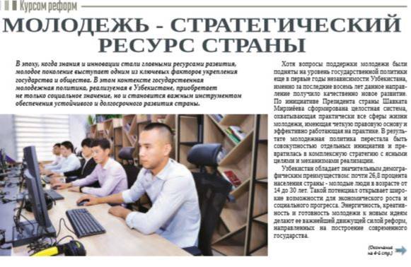 Хотя вопросы поддержки молодежи были подняты на уровень государственной политики еще в первые годы независимости Узбекистана, именно за последние восемь лет данное направление получило качественно новое развитие. По инициативе Президента страны Шавката Мирзиёева сформирована целостная система, охватывающая практически все сферы жизни молодежи, имеющая четкую правовую основу и эффективно работающая на практике. В результате молодежная политика перестала быть совокупностью отдельных инициатив и превратилась в комплексную стратегию с ясными целями и механизмами реализации.