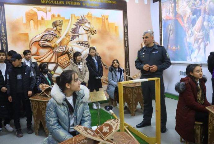 В частности, военнослужащими Самаркандского гарнизона для учащейся молодежи организовываются и проводятся различные учебные занятия, в ходе которых они знакомятся со сведениями о жизни и боевом искусстве наших великих полководцев Сахибкирона Амира Темура и Султана Джалолиддина Мангуберди, а также о представителях джадидского движения, боровшихся за свободу и процветание своего народа.