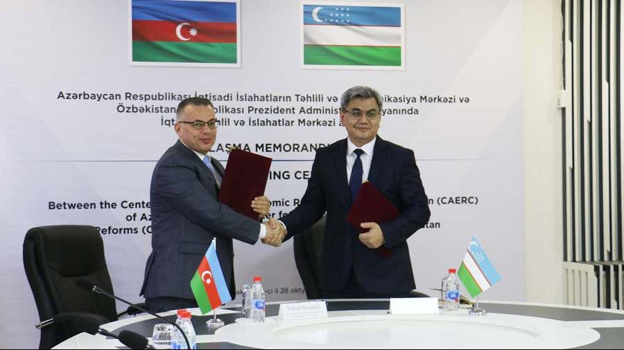 Меморандум подписали доктор Обид Хакимов, директор Центра экономических исследований и реформ и доктор Вусал Гасымлы, исполнительный директор Азербайджанского центра экономических исследований и реформ.