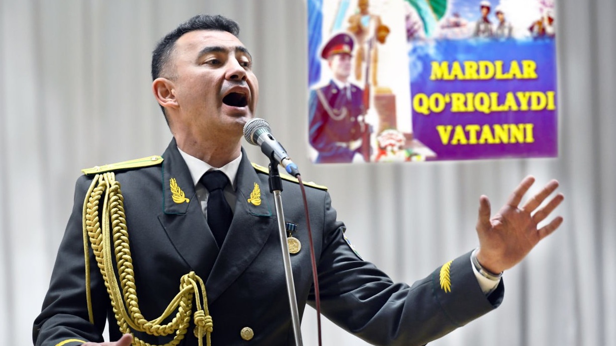 Своего рода мастер-класс молодым исполнителям преподал солист и руководитель ансамбля пограничных войск Службы государственной безопасности Республики Узбекистан старший лейтенант Акбар Атамухамедов. Поздравляя лицеистов и гостей из ветеранов национальной армии, Акбар отметил, что у военных не бывает легких и трудных путей, у них только славный путь. В его исполнении песня «Невидимый фронт» прозвучала как напоминание всем нам о том, что границы бывают не только между странами, но и внутри сердец и душ. А когда он как заправский репер спел песню «Узбекман» («Я –узбек!») главное слово припева «Узбекман» кричал весь зрительный зал. Умеет управлять аудиторией!