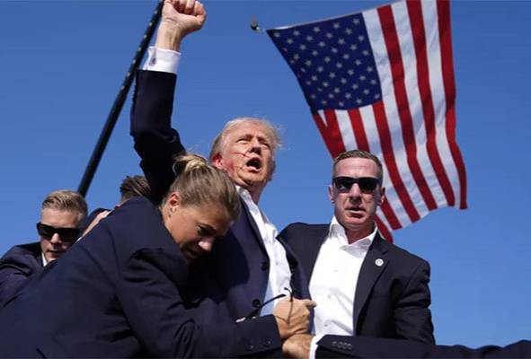 На опубликованных в соцсетях кадрах было видно, что политик поучил ранение в ухо. Несмотря на это, он не торопился покидать сцену: вместо этого экс-лидер США выкрикивал лозунги и грозил кулаком.