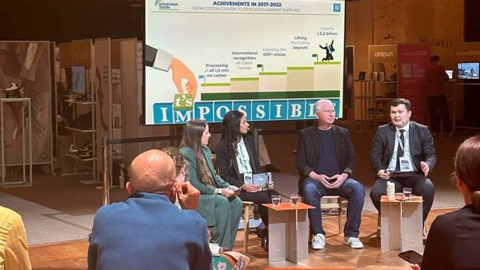 В рамках форума состоялось отдельное мероприятие, посвященное текстильному потенциалу Узбекистана, на котором выступили исполнительный директор «Better Cotton» Алан Макклей, представитель Европейской экономической комиссии ООН (UNECE) Оливия Шассо и сотрудник Посольства.