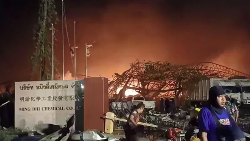По приказу губернатора провинции Самутпракан организована эвакуация всего населения из зоны в радиусе пяти километров от завода, на котором продолжается пожар и существует вероятность новых взрывов. О химическом отравлении воздуха в районе взрыва пока не сообщается.