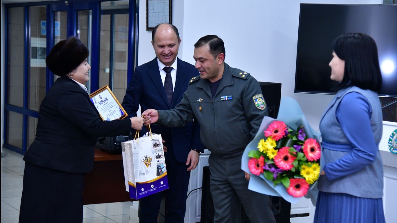 Главный редактор Объединенной редакции газеты «Ватанпарвар» и журнала «Узбекистон армияси» подполковник Ахрор Очилов огласил приказ начальника Департамента информации и массовых коммуникаций Министерства обороны о награждении победителей и активных участников конкурса публицистических статей «Ватан билан улғаяр шон-шавкатимиз».