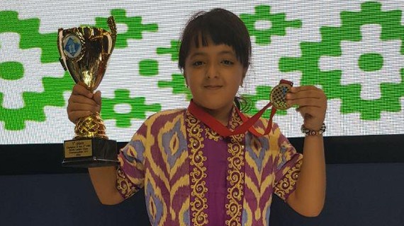 На этом фото Афруза после победы 17 августа 2019 года на чемпионате мира в Минске среди кадетов по быстрым шахматам. Быстро взрослеет!