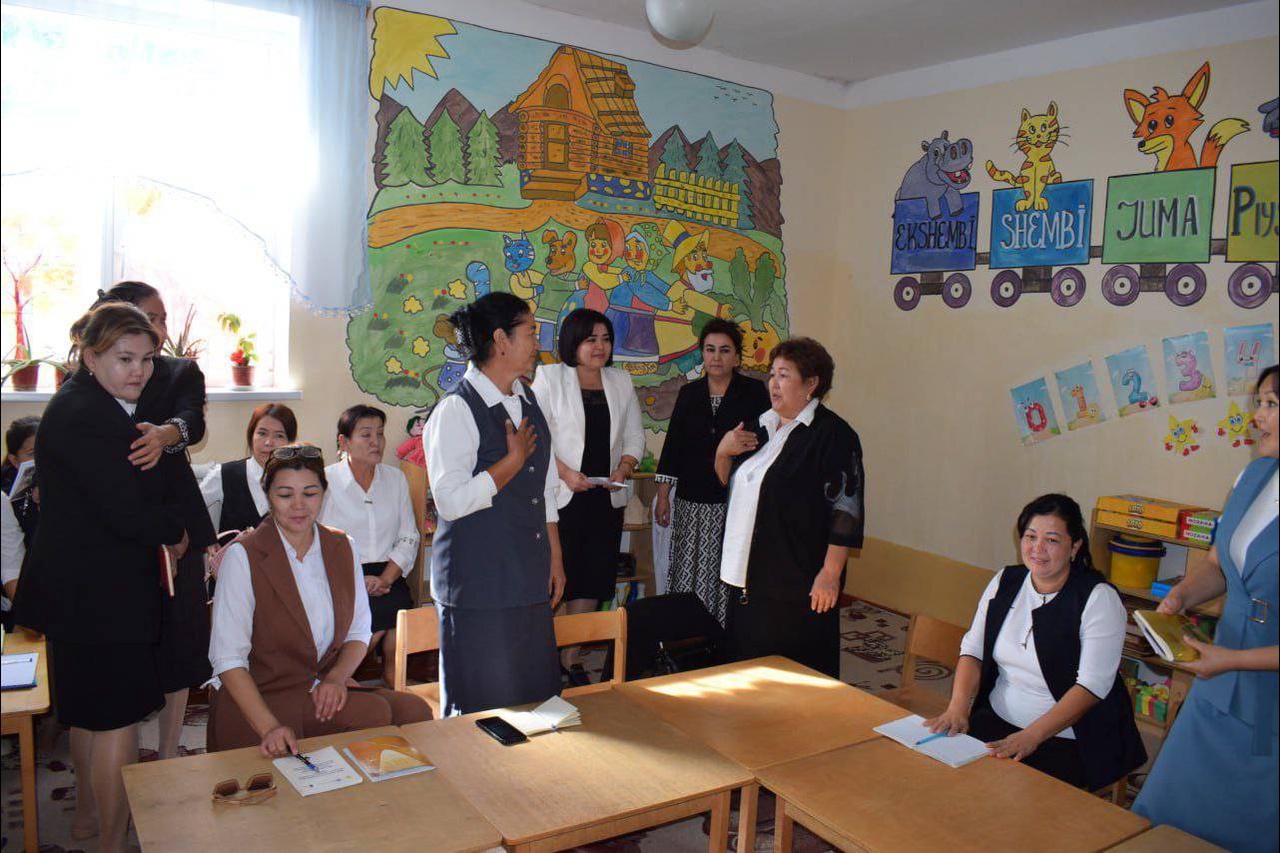 Вместе с медиками в Республике Каракалпакстан находятся 16 педагогов области. В рамках мероприятий по обмену опытом навоийские преподаватели посетили 19-ую и 36-ую дошкольные образовательные организации Чимбайского района и ознакомились с образовательными процессами. Совместно с директорами, методистами и воспитателями 34 ДОО региона были проведены практические занятия, тренинги и беседы. Практические занятия также организованы для руководителей, заместителей директоров школ, психологов, учителей 48 школ района. Также навоийсксие педагоги посетили государственную дошкольную организацию № 36 на 120 мест, которая была построена и сдана в эксплуатацию в Чимбайском районе при спонсорстве хокимията Навоийской области, ознакомились с созданными в организации комфортными и современными условиями, понаблюдали за образовательными процессами и дали методические рекомендации.
