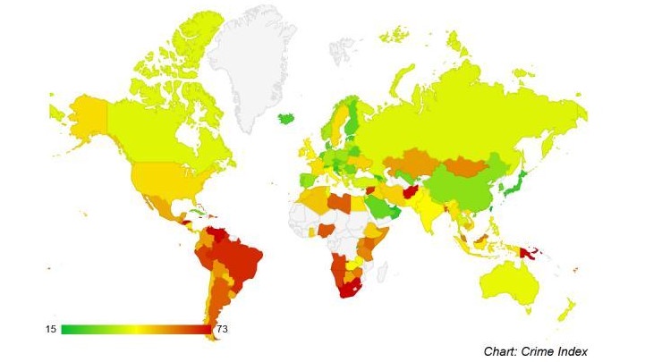 В этом же рейтинге были перечислены самые опасные для путешествий страны с точки зрения преступности в 2020 году. Среди них оказались Венесуэла (индекс преступности 84,36), Папуа-Новая Гвинея (80), Южная Африка (77,3) и Афганистан (76,9).