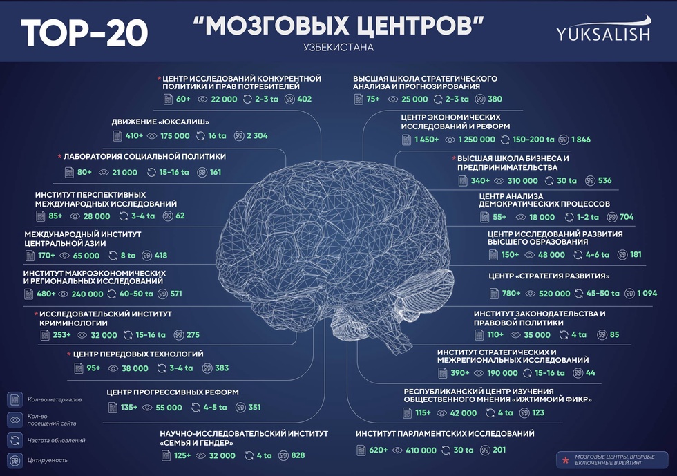 Результаты 2025 года показывают, что научно-аналитическая активность в Узбекистане растет с каждым годом. «Мозговые центры» достигают значительных результатов не только по количеству материалов, но и в вопросах взаимодействия с общественностью и цифровой активности. Посредством данного рейтинга движение «Юксалиш» стремится развивать аналитическую среду в стране, поощрять открытость и здоровую конкуренцию, а также знакомить общественность с существующим экспертным потенциалом.