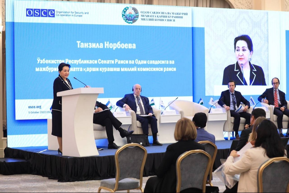 В своем выступлении Председатель Сената Олий Мажлиса, Председатель Национальной комиссии по противодействию торговле людьми и принудительному труду Танзила Нарбаева особо отметила, что торговля людьми стала глобальным злом и затрагивает все государства нашей планеты. Являясь комплексной проблемой, она переплетена с важными аспектами обеспечения прав человека, его здоровья, благополучия матери и ребенка, образования, безопасной миграции, эксплуатации труда. Ввиду транснационального характера данного преступления, наряду с совершенствованием национальной системы противодействия торговле людьми, укреплением законодательной и организационно-правовой базы, главным требованием времени является развитие регионального и международного сотрудничества, а также активное вовлечение институтов гражданского общества.