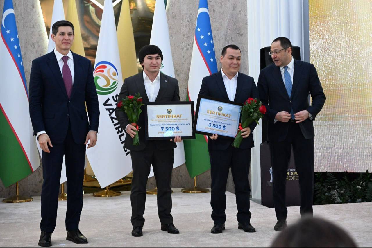 В начале мероприятия спортсменам, которые в этом году поднимались на пьедестал почета на взрослых чемпионатах мира, по решению Президента Узбекистана были торжественно вручены единовременные денежные призы. После участникам продемонстрировали видеоролик, посвященный наиболее важным спортивным событиям, отмеченным в узбекском спорте в уходящем году.