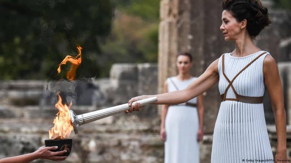 Олимпийский огонь по традиции зажигают с помощью параболического зеркала от лучей солнца в Древней Олимпии - родине Олимпийских игр. В 2020 году церемония зажжения огня для Олимпиады в Токио прошла без зрителей из-за начала пандемии коронавируса. Журналистам разрешили тогда сделать с расстояния фотографии и видео репетиции церемонии.