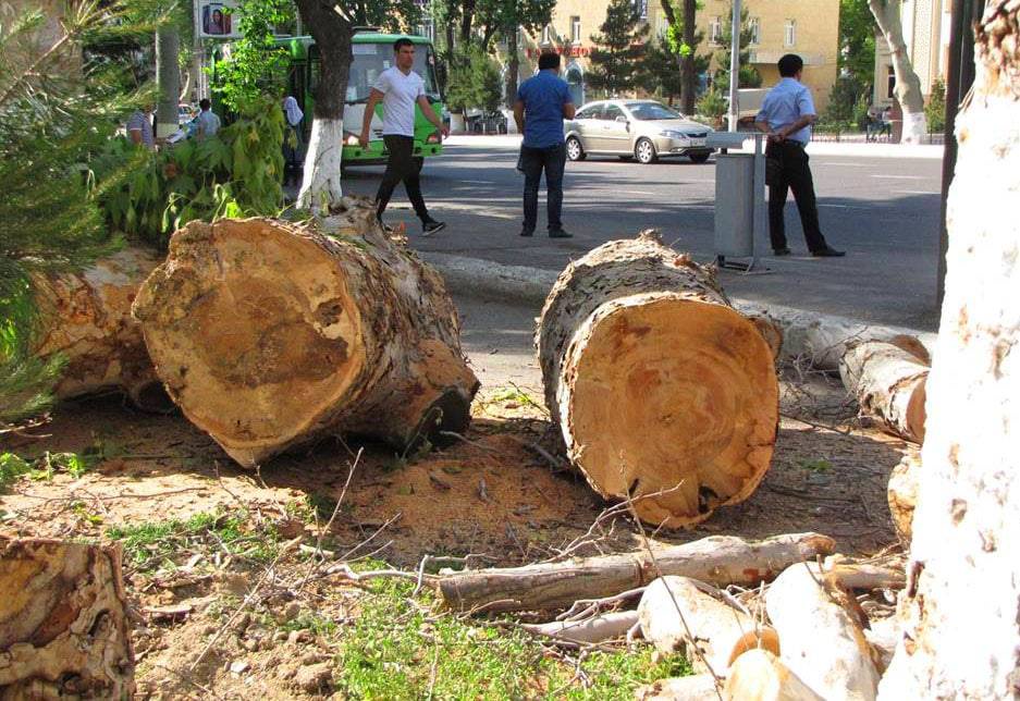 - о незаконных порубках, рубках, повреждении, уничтожении или перемещении деревьев, кустарников, других растений и саженцев - 1 БРВ (270 тыс. сум.);