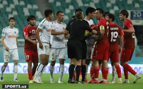 Примерно такая же горячая ситуация сложилась и во встрече «Кизилкума» с «Навбахором». С трудом удалось арбитрам и стражам порядка разнять соперников буквально перед финальным свистком.