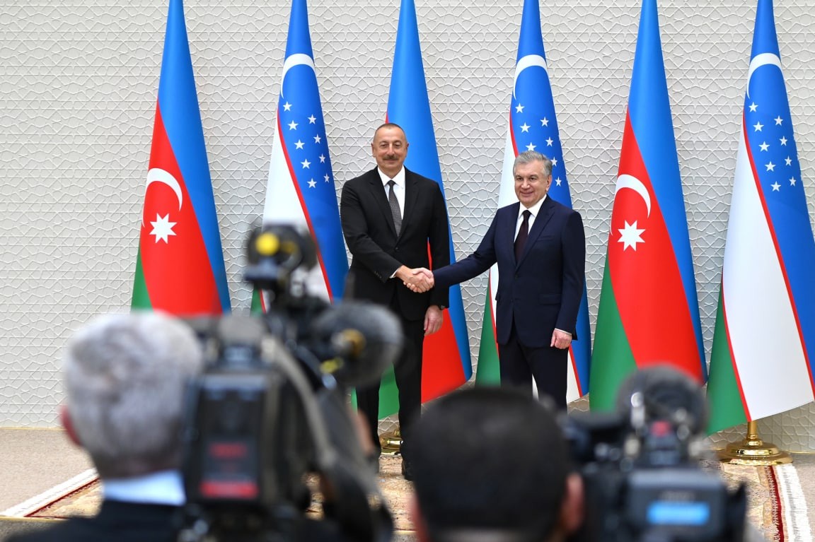 В церемонии приняли участие члены официальных делегаций Узбекистана и Азербайджана.