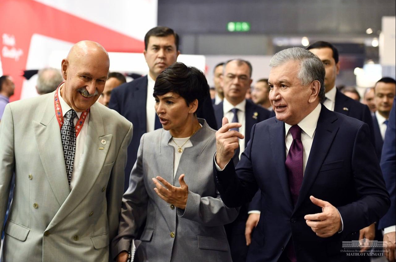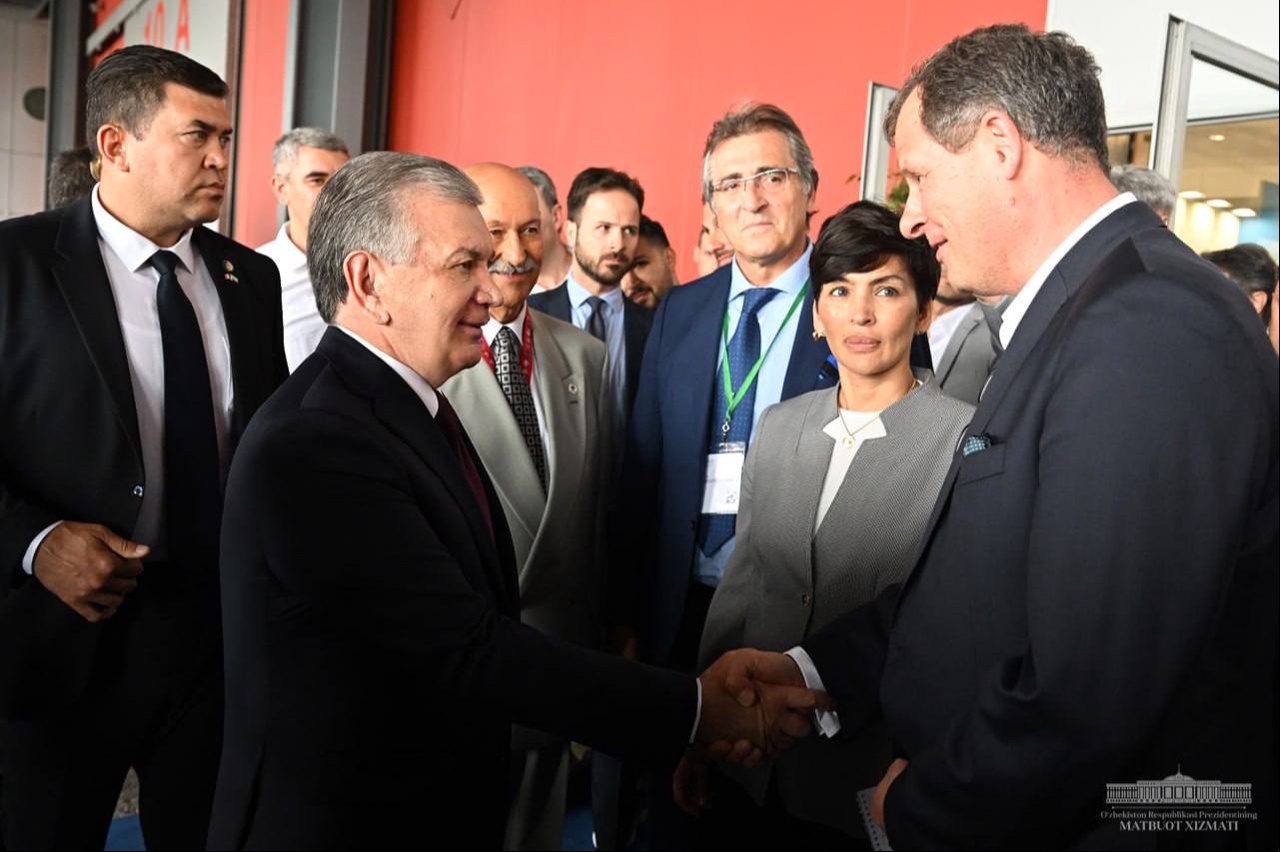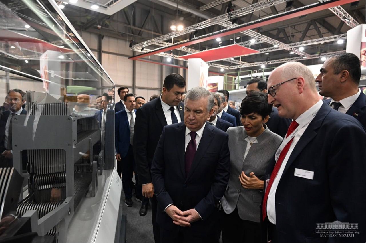 Во время осмотра Шавкат Мирзиёев пообщался с главами компаний, ознакомился с презентациями технологических новинок индустрии.