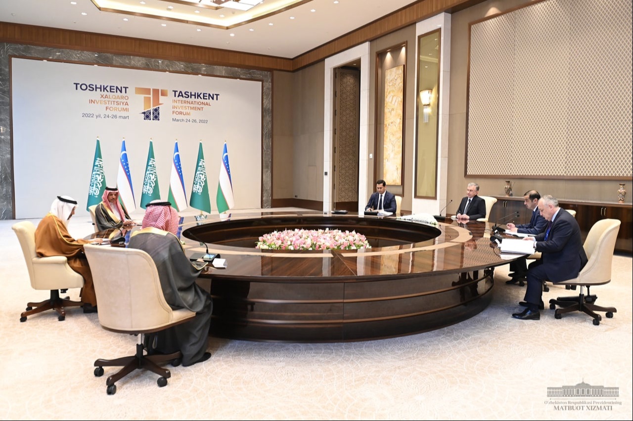 Халид аль-Фалих поблагодарил Президента Узбекистана за теплый прием, передал приветствия и наилучшие пожелания от Короля Саудовской Аравии Салмана аль-Сауда и Наследного принца Мухаммеда аль-Сауда.