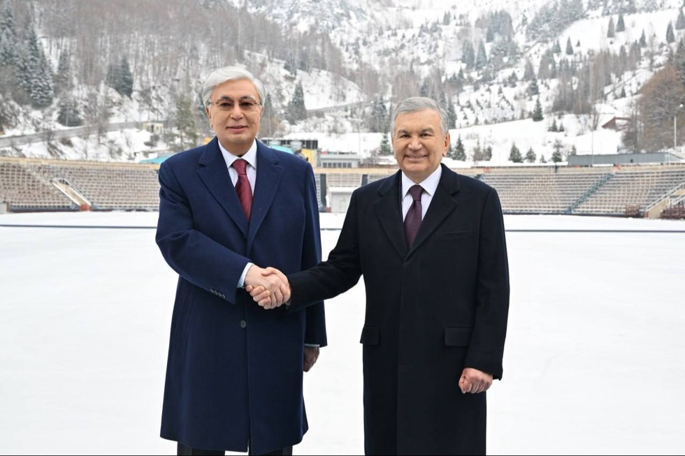 Президенты Узбекистана и Казахстана совместно просмотрели показательные выступления молодых фигуристов.