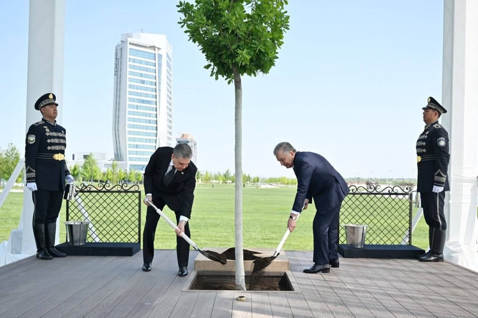 Лидеры Узбекистана и Туркменистана вместе посадили дерево