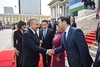 Главы государств обошли строй почетного караула и поприветствовали членов официальных делегаций.