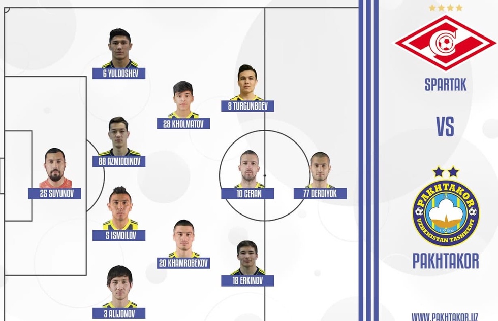 Легионер из Узбекистана Остон Урунов получил травму перед матчем, как сообщили на сайте ФК «Спартак», и поэтому не был заявлен.