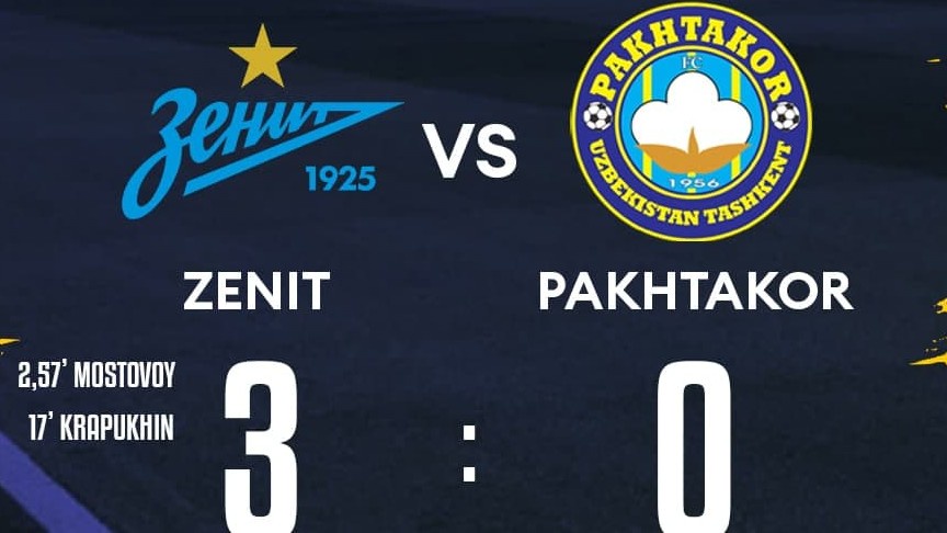 Новый наставник ташкентцев, Питер Хюистра, использовал против питерских футболистов в двух таймах два разных состава. На первый тайм за «Пахтакор» вышли играть футболисты основы: Кувватов, Алижонов, Исмоилов, Кримец, Сайфиев, Хамробеков, Собирхужаев, Эркинов, Холматов, Собиржонов, Дердийок.