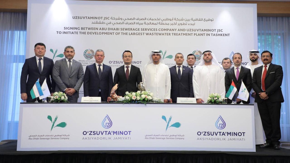 Меморандум подписали первый заместитель министра жилищно-коммунального обслуживания, председатель правления АО «Узсувтаъминот» Сахиб Саифназаров и главный исполнительный директор компании «Abu Dhabi Sewerage Services» Ахмед Аль-Шамси.