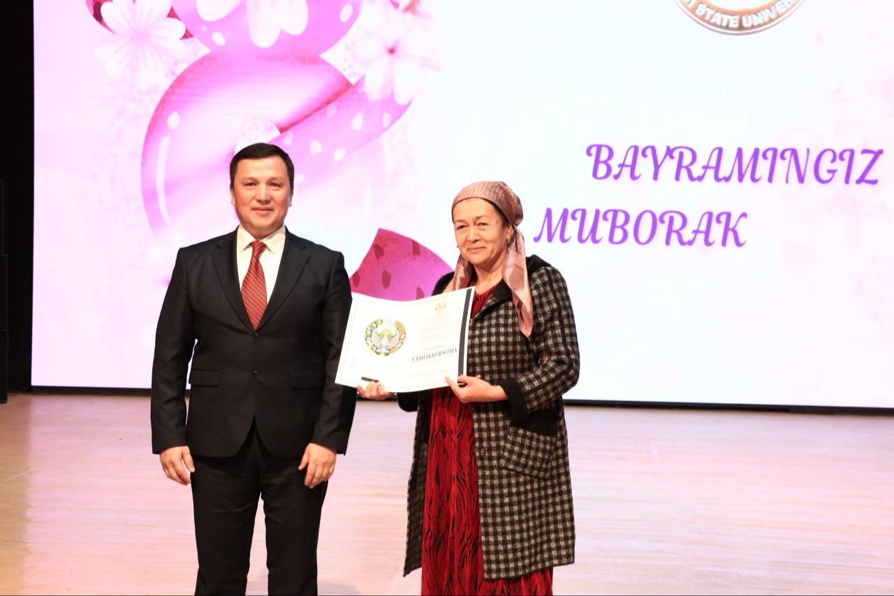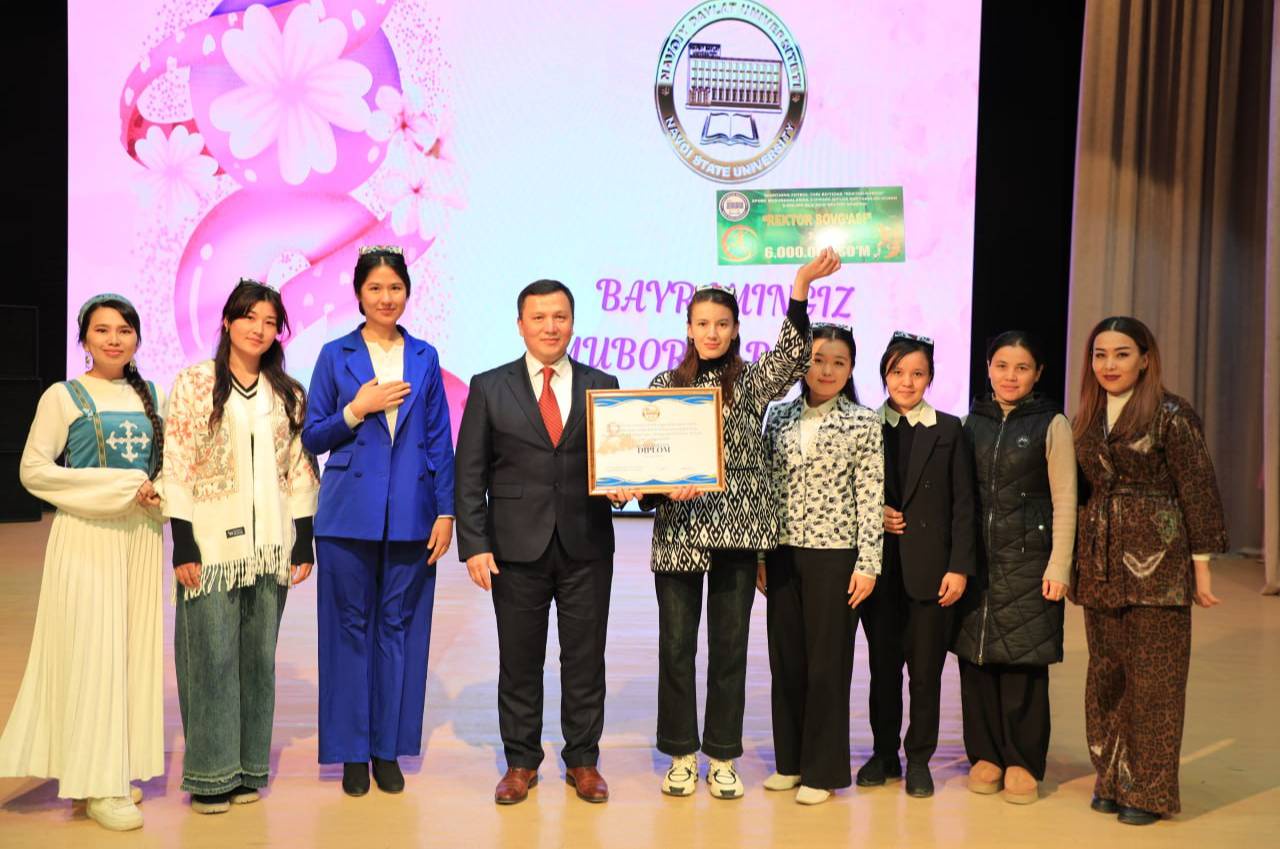 Во Дворце культуры «Фарход» города Навои состоялось торжественное мероприятие для женщин вуза. С праздником весны и красоты собравшихся поздравил ректор НавГУ, доктор экономических наук, профессор Мухиддин Калонов, который отметил неоценимый вклад в развитие университета, роль в сфере образования, научной и инновационной деятельности женщин – сотрудниц, преподавателей, студенток и магистранток и выразил искреннюю благодарность за неустанный труд, поблагодарив за воспитание молодого поколения.