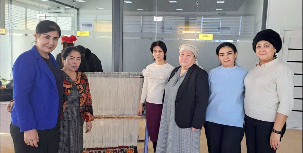 В рамках Недели женского предпринимательства в целях развития ремесел в Каракалпакстане и широкой пропаганды ковроткачества среди жительниц северной территории республики Зебинисо Шарипова провела мастер-класс по плетению ковровых изделий и одежды из шерсти.