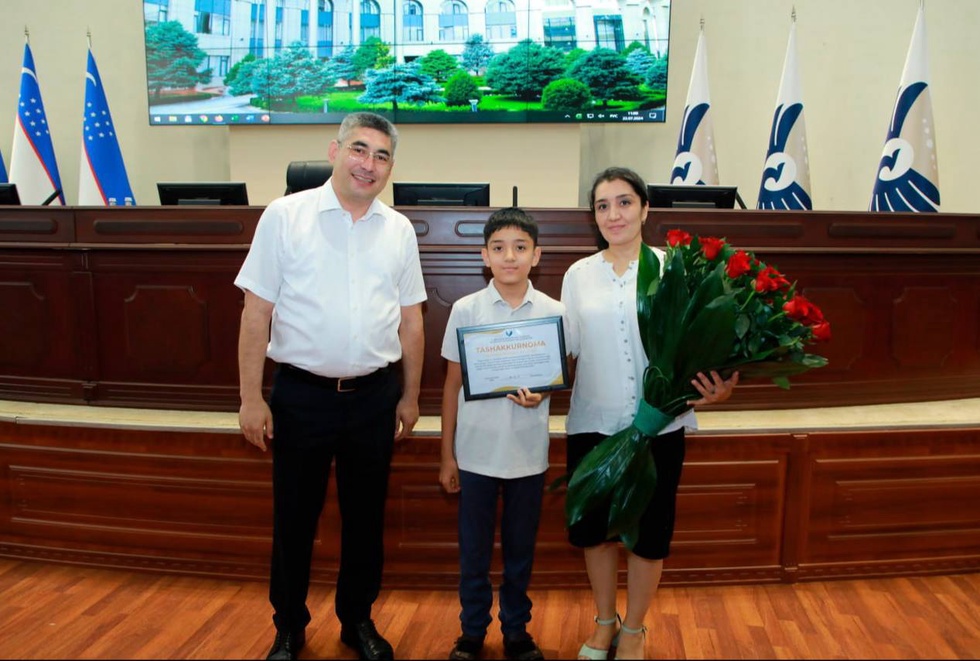 «Вам отдельная благодарность за воспитание такого сына. Шахбозжон стал образцом Нового поколения Нового Узбекистана,» - заключил Ш. Кудбиев, обратившись к матери героя.