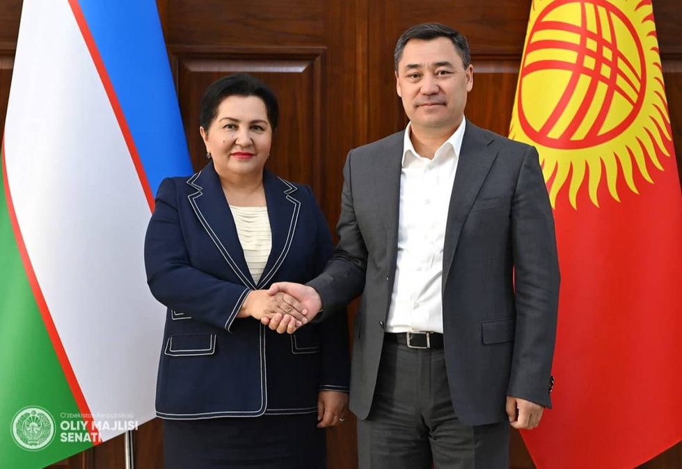 Глава Сената Олий Мажлиса Узбекистана Т. Нарбаева выразила искреннюю признательность кыргызской стороне за оказанное радушие и гостеприимство. Она передала самые теплые приветствия и наилучшие пожелания Президента Республики Узбекистан Ш. Мирзиёева, а также полную поддержку осуществляемым в Кыргызстане преобразованиям.