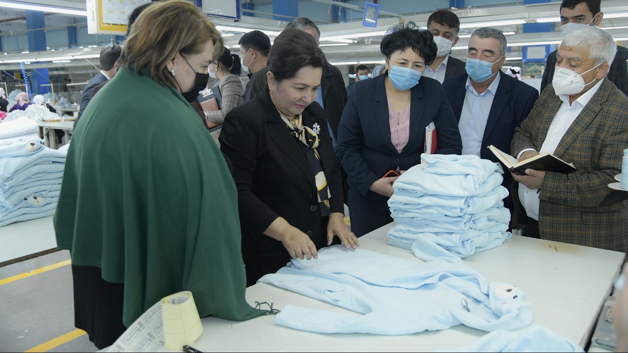 В ООО «Алким Текстиль» Куйичирчикского района работают 150 женщин. На этом совместном предприятии, основанном в 2019 году вместе с российскими партнерами, также работают женщины, включенные в «железную тетрадь» и «женскую тетрадь».
