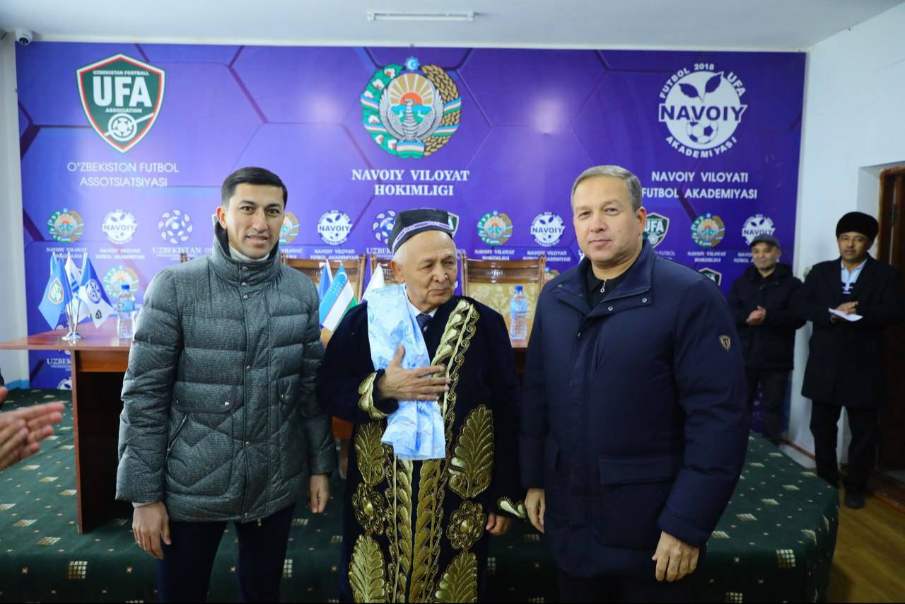 Хоким Навоийской области Нормат Турсунов и вице-президент Ассоциации футбола Узбекистана Одил Ахмедов вручили нагрудный знак «За вклад в развитие футбола в Узбекистане» ветерану футбола, декану факультета Физической культуры Навоийского государственного педагогического института Абдухолику Нуруллаеву.