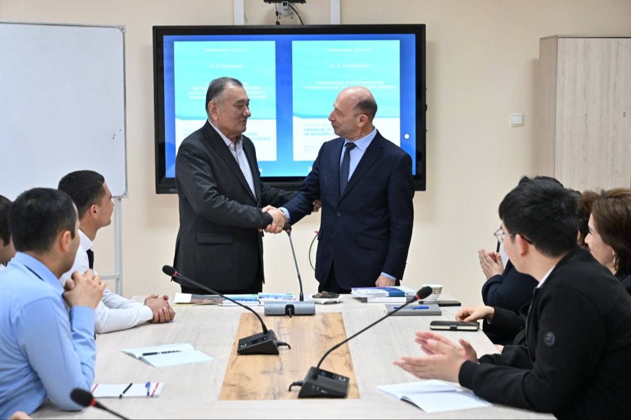 Состоялась встреча председателя правления – генерального директора АО «НГМК» Кувандика Санакулова с профессором Московского государственного университета, доктором экономических наук, академиком Владимиром Квинтом.