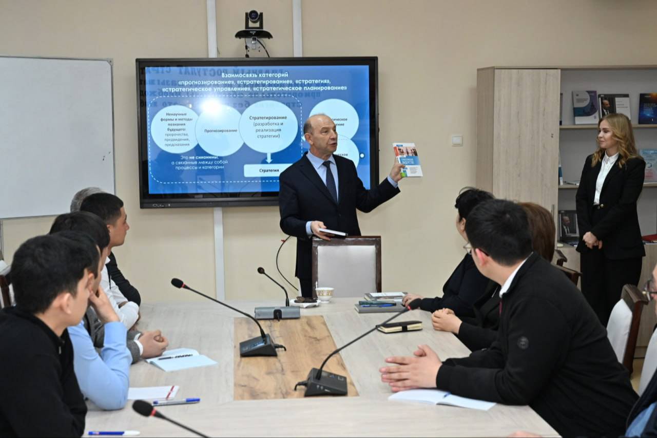 Визит представителей Московского государственного университета продолжился в Навоийском государственном горно-технологическом университете. Профессор Московского государственного университета, доктор экономических наук, академик Владимир Квинт в сопровождении председателя правления – генерального директора АО «НГМК» Кувандика Санакулова ознакомился с созданными в университете условиями, в том числе с деятельностью кафедры «Региональные и корпоративные стратегии», и встретился со студентами.