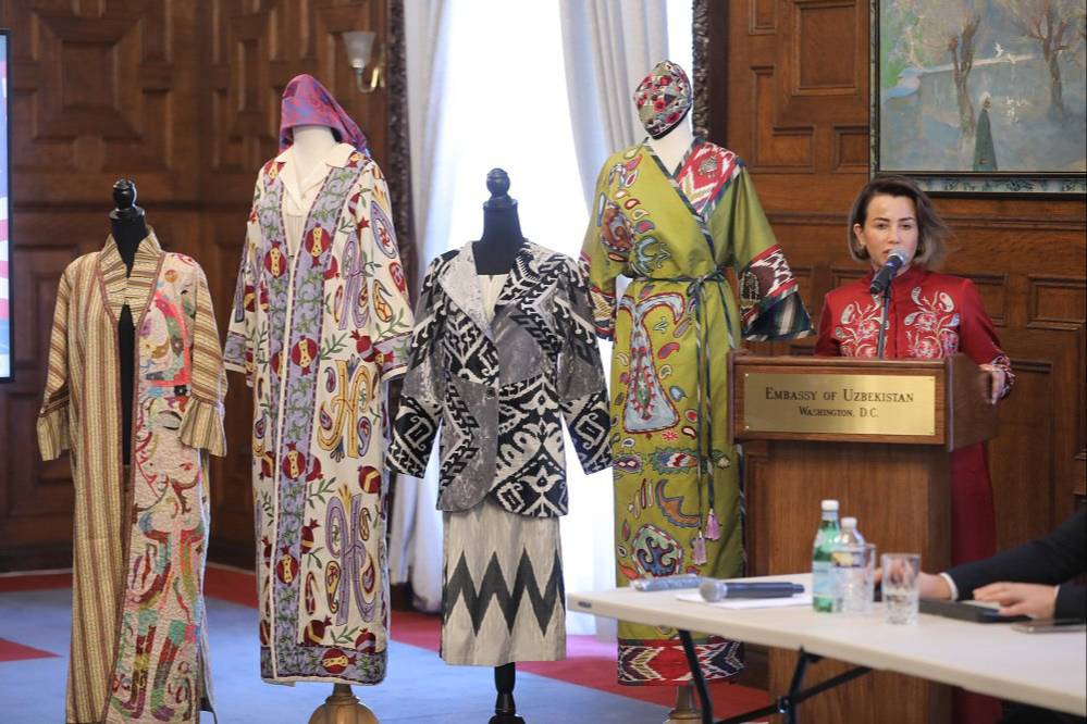 Кроме того, прошла презентация работ узбекского дизайнера и мастера традиционной вышивки Хамиды Иноятовой. Она рассказала о процессе создания традиционных узоров и глубоких традициях узбекской вышивки.