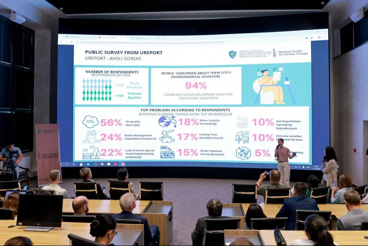 По завершению пресс-конференции советник министра и директор Национального центра по изменению климата - Суна Парк представила онлайн платформу https://greencities.uz/. Посетив данный сайт, каждый желающий сможет узнать, какое место в рейтинге занимает город, ознакомиться с экологическими паспортами и мастер-планами, а также получать актуальную подробную информацию о принимаемых мерах по улучшению экологической устойчивости в городах Узбекистана.