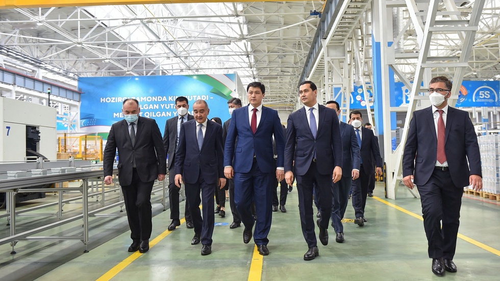 Вместе с премьер-министром Республики Узбекистан Абдуллой Ариповым посетили выставочный зал изделий, осмотрели производственные цеха и павильоны с продукцией, произведенной в Узбекистане.