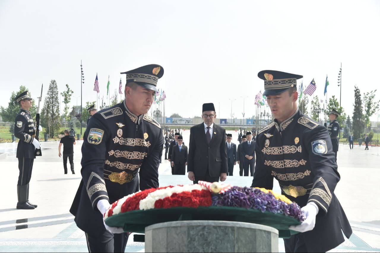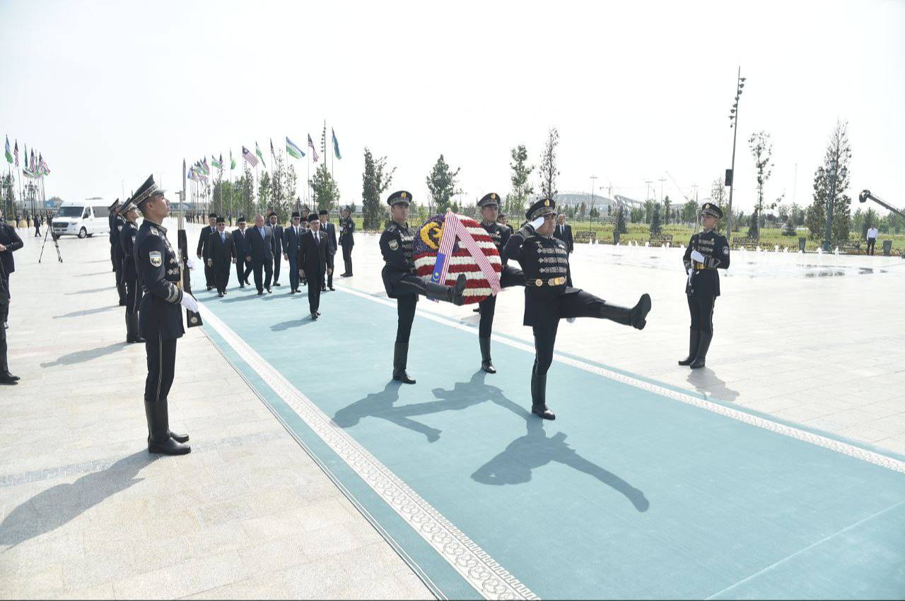 Прибывший в нашу страну с официальным визитом Премьер министр Малайзии Анвар Ибрагим в сопровождении Премьер-министра Республики Узбекистан Абдуллы Арипова посетил парк «Янги Узбекистон», где возложил цветы к Монументу Независимости, ознакомился с историей независимого развития нашей страны и созданием этого уникального комплекса.