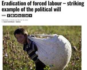 «Достижения Узбекистана в прекращении принудительного труда были отмечены Государственным департаментом США. В результате международное сообщество высоко оценило реформы, проводимые в этом направлении в нашей стране», - пишет автор.