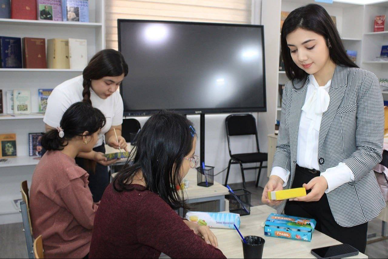 Юношам и девушкам, успешно прошедшим бесплатные курсы обучения по национальному ремесленничеству, швейному делу, изготовлению цветов различных форм, компьютерной грамотности за счет грантовых средств центра предоставили сырье для начала трудовой деятельности.