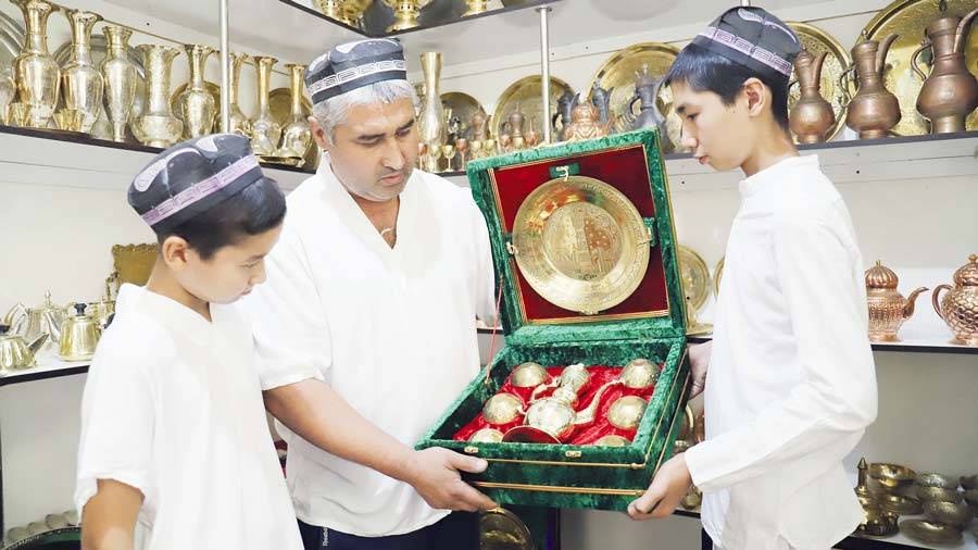 …С тех пор прошли годы. Акрамхон Юнусов стал известным мастером, хорошо знающим свое дело. Сегодня его сыновья Мухаммадалихон и Мухаммадюсуфхон идут по стопам отца. Несмотря на юный возраст, в свободное время они усердно изучают секреты ремесла. Один рисует узор, другой изготавливает сосуд. Отец хочет воспитать их в будущем искусными мастерами.