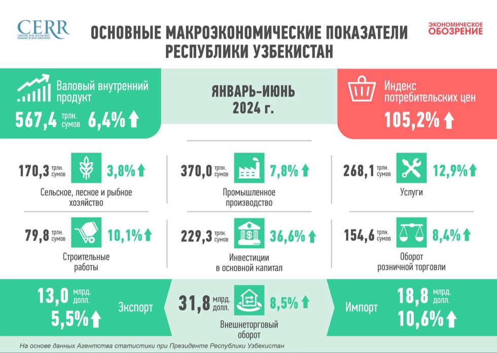 В целом, первое полугодие текущего года было благоприятным для экономики Узбекистана. Деловая и инвестиционная активность позволили выйти на опережающую динамику.